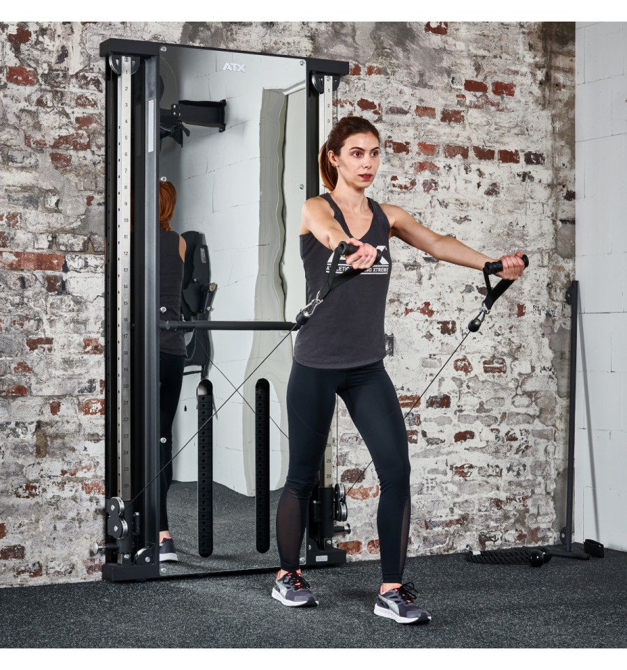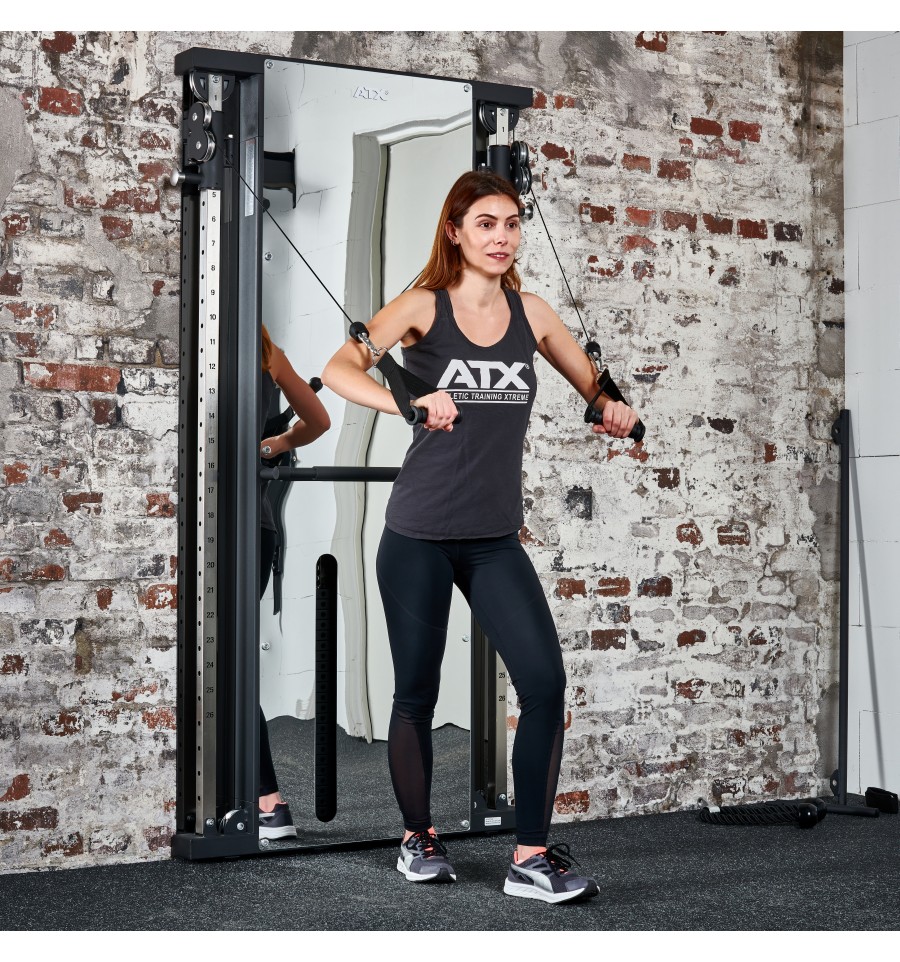 ATX® Dual Wall Pull Station – Mirror to ultrapłaska, ścienna stacja z podwójnym wyciągiem, zaprojektowana z myślą o maksymalnej funkcjonalności przy minimalnym zapotrzebowaniu na przestrzeń. Dzięki głębokości montażowej wynoszącej zaledwie 11 cm idealnie sprawdzi się w studiach treningowych, siłowniach komercyjnych oraz domowych strefach fitness.