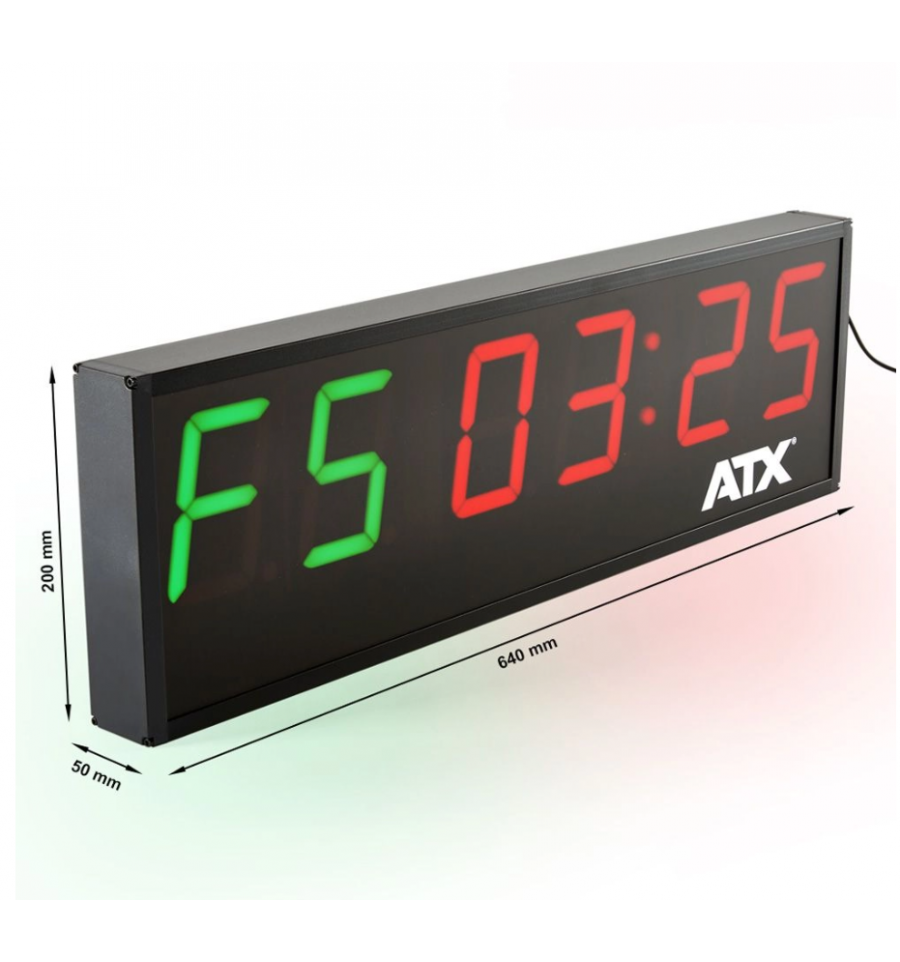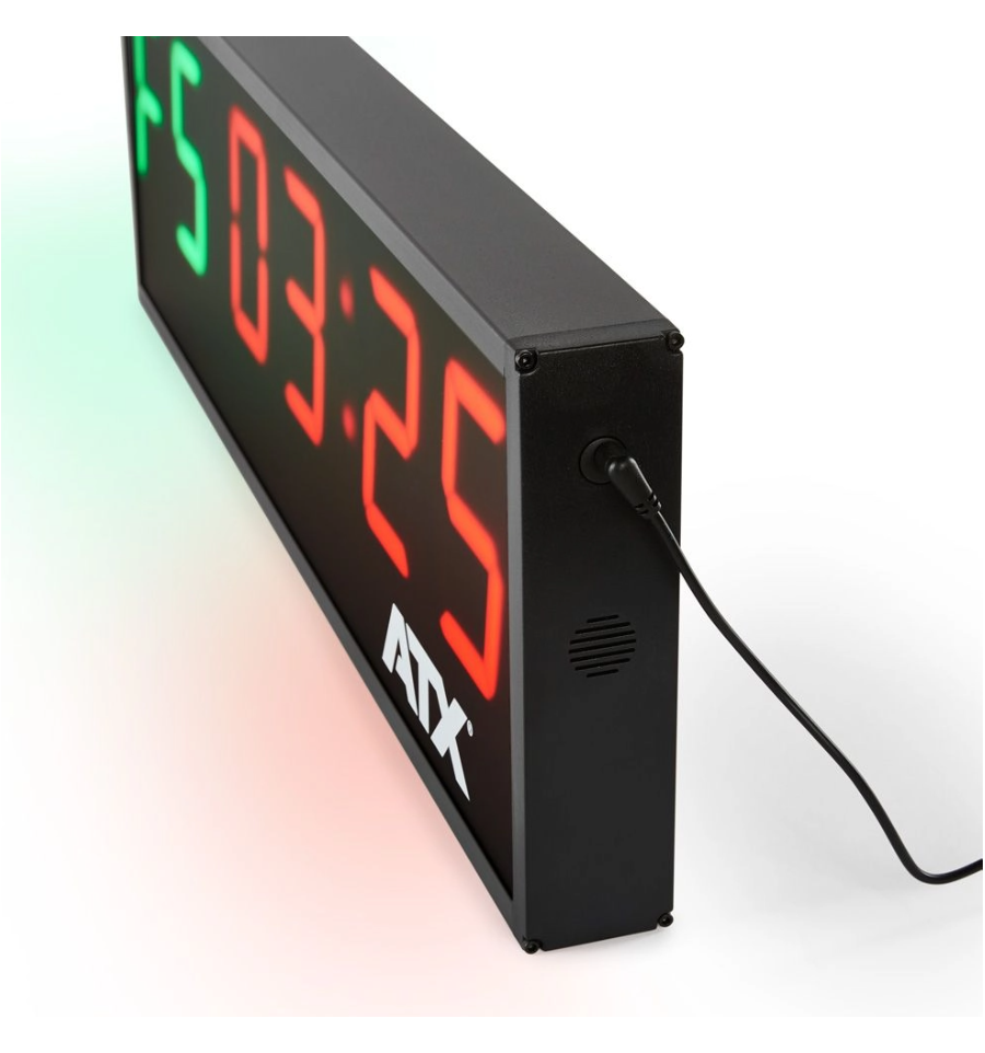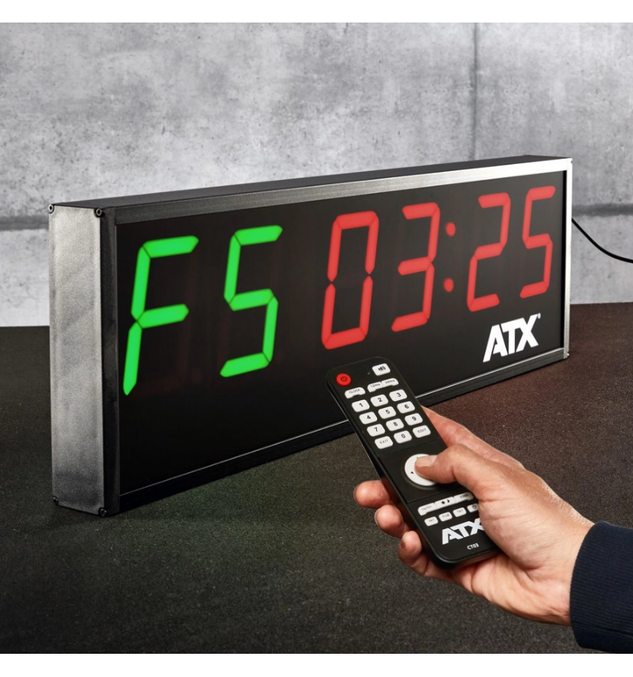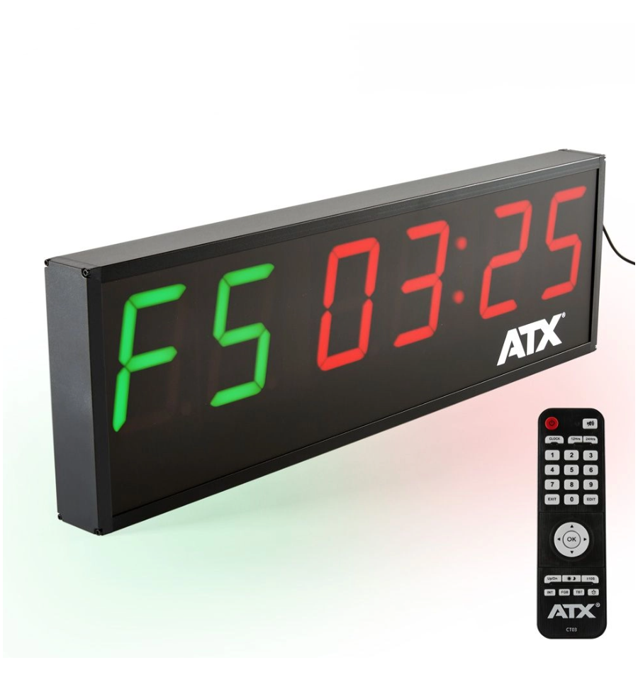 ATX® Interval Timer to zaawansowany zegar cyfrowy stworzony z myślą o intensywnych i zorganizowanych treningach. Doskonały do crossfitu, treningów interwałowych HIIT, Tabata, obwodowych czy w klubach sportowych. Dzięki dużym, wyraźnym cyfrom LED o wysokości 10 cm i czytelnemu wyświetlaczowi, timer pozostaje widoczny nawet z dużej odległości – idealny zarówno do małych sal, jak i dużych hal treningowych.